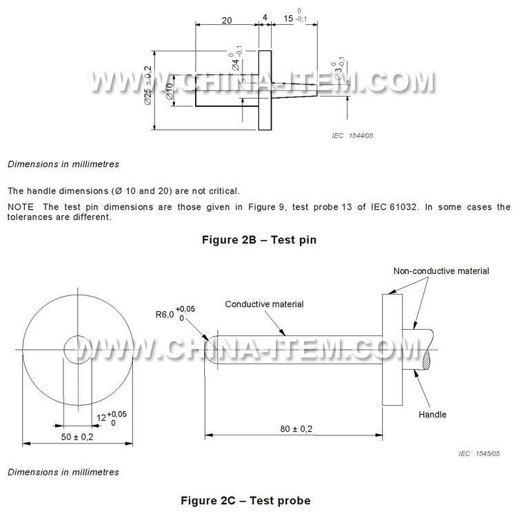 試驗(yàn)短銷主要根據(jù)IEC61032圖9試具13、GB/T16842試具13、IEC60950圖2B、IEC60335、GB4706、GB8898、IEC60065等標(biāo)準(zhǔn)制作,用于檢驗(yàn)0類設(shè)備和Ⅱ類設(shè)備中危險(xiǎn)的帶電部件是否被觸及。